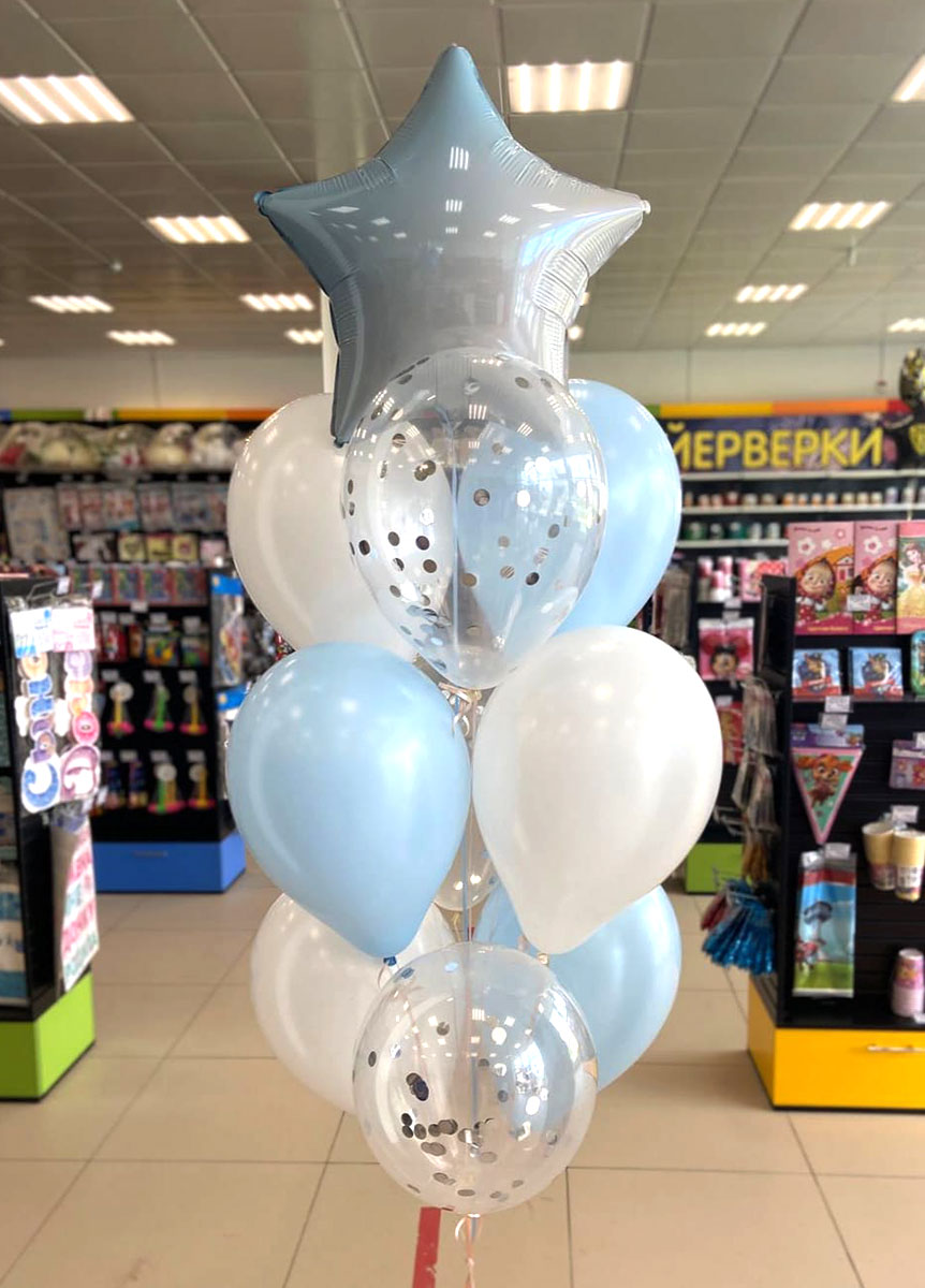 Шар фольга без рисунка Звезда градиент голубой 46 см 1 штШар латексный Кристалл прозрачный с декоративным наполнением круги конфетти серебро 30 см 3 шт