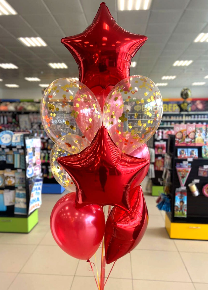Шар фольга без рисунка Звезда красное 46 см 3 штШар латексный Кристалл прозрачный с декоративным наполнением круги конфетти золото 30 см 3 шт