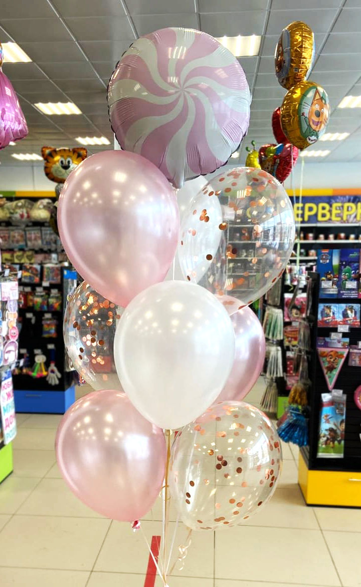 Букет Ассорти из шаров Леденец розовый 10 шт