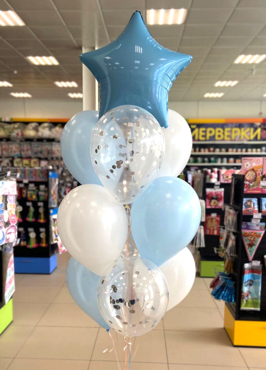 Шар фольга без рисунка Звезда пастель голубой 46 см 1 штШар латексный Кристалл прозрачный с декоративным наполнением круги конфетти серебро 30 см 3 шт