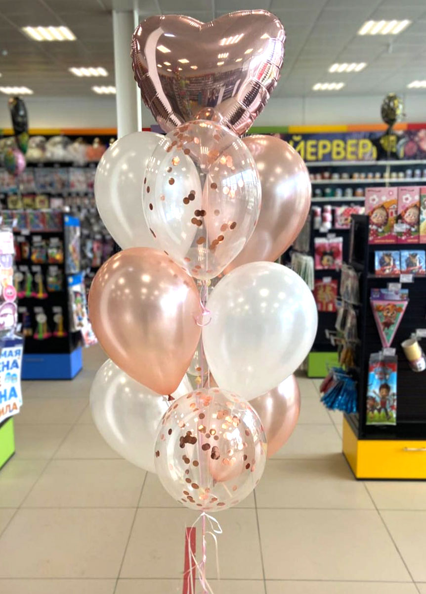 Шар фольга без рисунка Сердце розовое золото 46 см 1 штШар латексный Кристалл прозрачный с декоративным наполнением круги конфетти розовое золото 30 см 3 шт