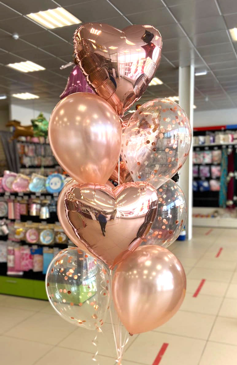 Букет Ассорти из шаров Сердца розовое золото 9 шт