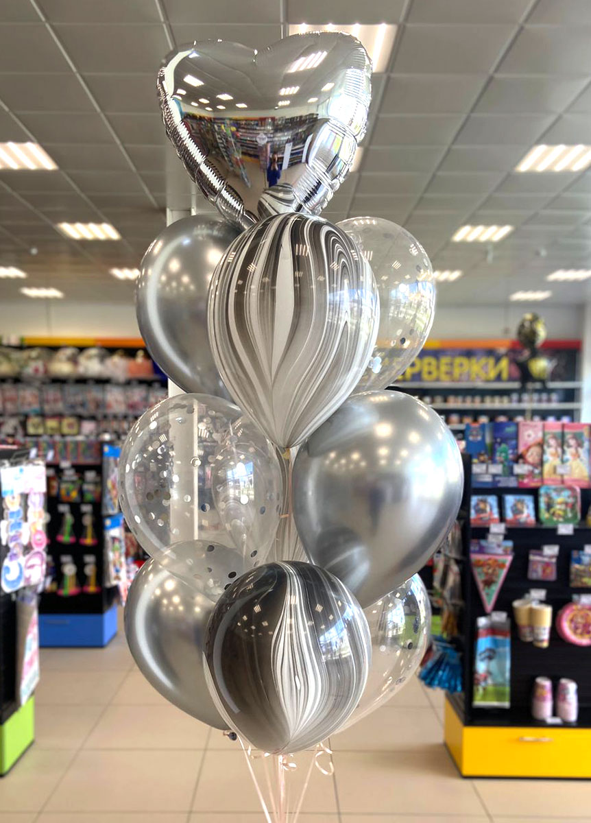 Букет Ассорти из шаров хром-агат Сердце серебро №1 10 шт