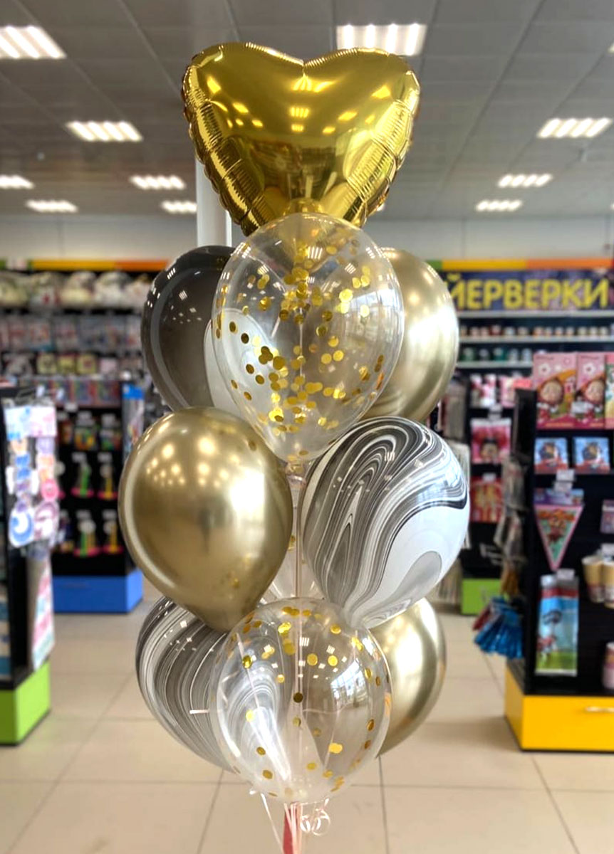 Букет Ассорти из шаров хром-агат Сердце золото №1 10 шт