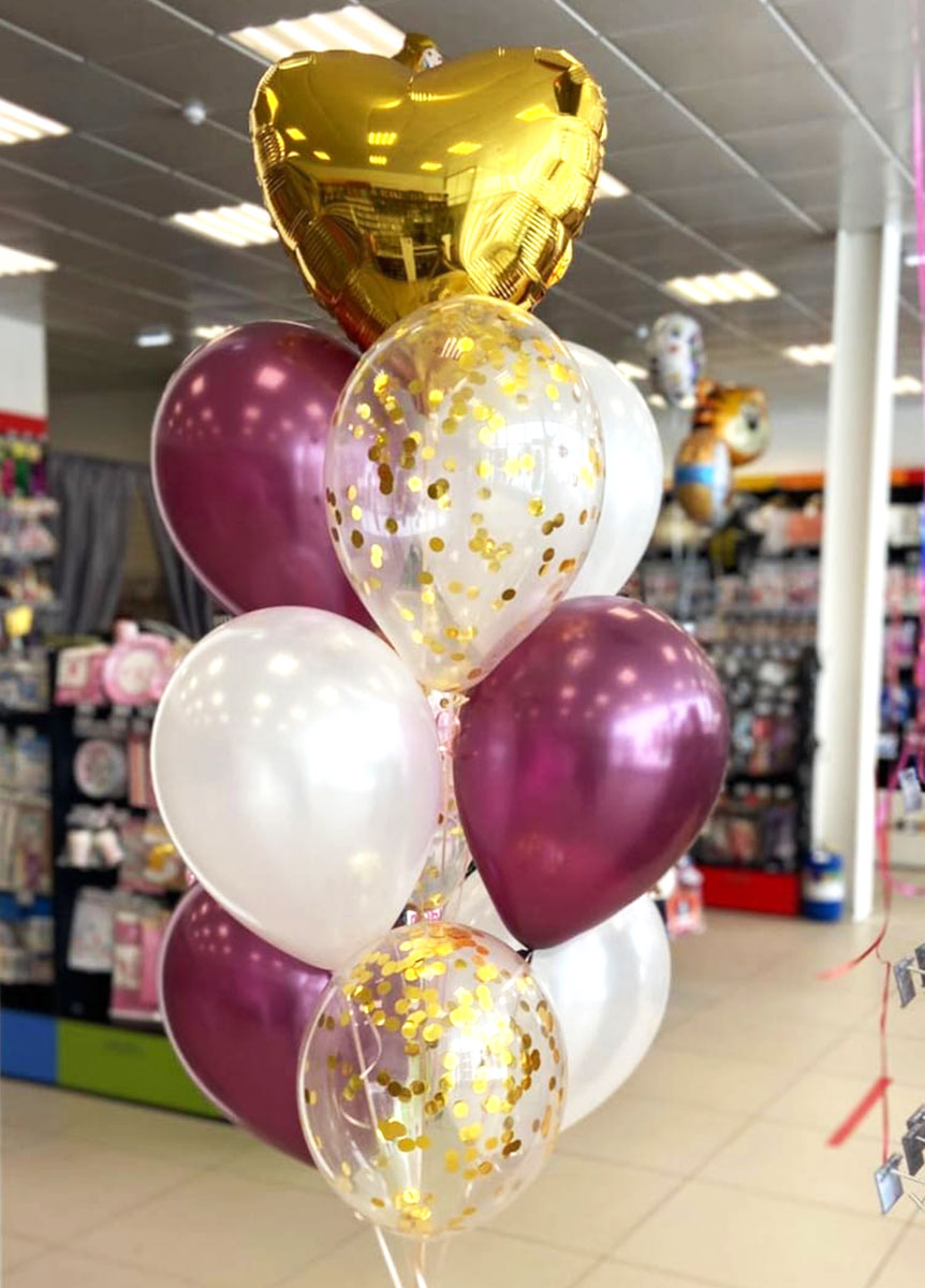 Букет из шаров Сердце золото-бургундия 10 шт