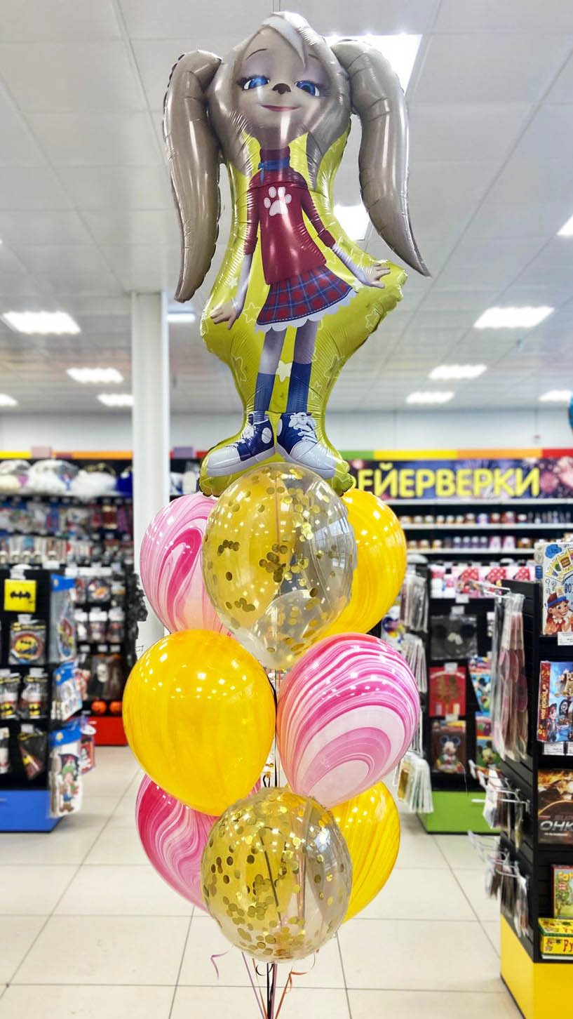 Шар фольга Фигура Барбоскины Роза 1 штШар латексный Кристалл прозрачный + конфетти золото 3 шт