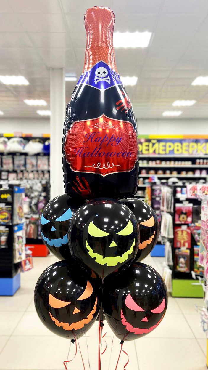Шар фольга Фигура Бутылка на Хэллоуин 1 шт (арт 21879)Шары латексные с рисунком дизайн Тыквы яркие черные (арт 612832) 30 см 6 шт