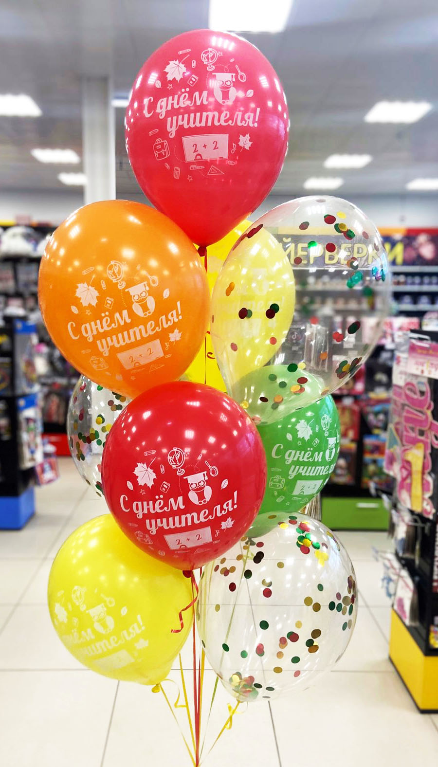 Шар латексный с рисунком День учителя 30 см 6 штШар латексный Кристалл прозрачный + конфетти матовое кружочки зеленый+красный+золото 3 шт