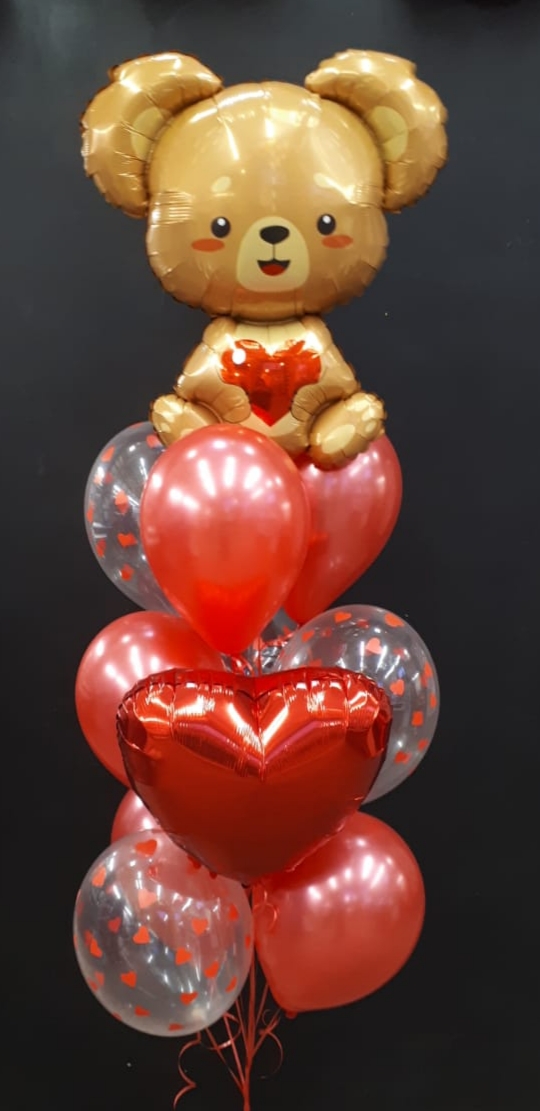 Шар фольга Фигура Мишка плюшевый с сердцем (901856) 1 штШар фольга без рисунка Сердце красное (FM) 40 см 1 шт