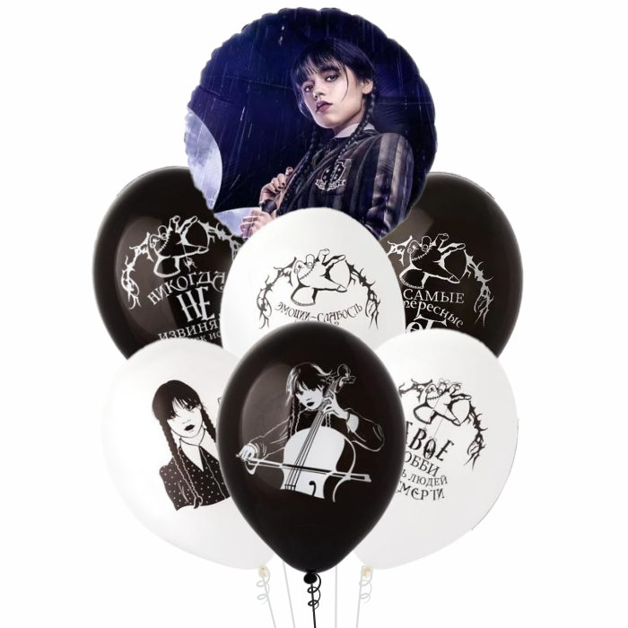 Шар Круг фольга 18" Мрачная стори Аддамсы (23500) 1 штШар латексный с рисунком Мрачная девочка (1103-2898) 6 шт