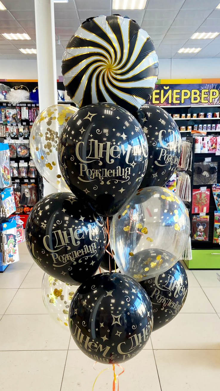 ----Букет С Днем Рождения Леденец черно-золотой 10 шт