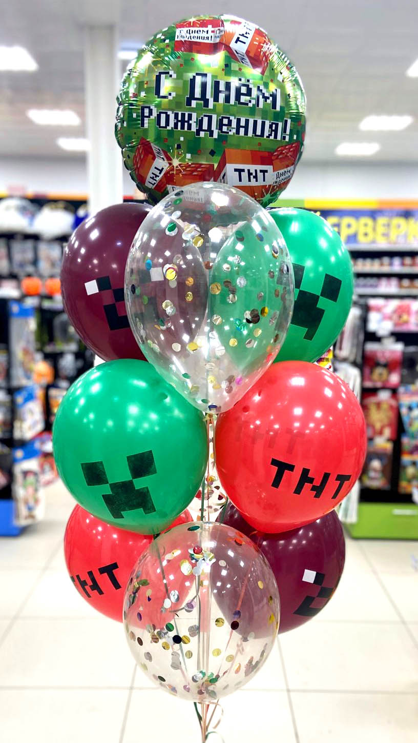 Шар Круг фольга С ДР Пиксели 46 см 1 штШар латексный Кристалл прозрачный + конфетти разноцветное 3 шт