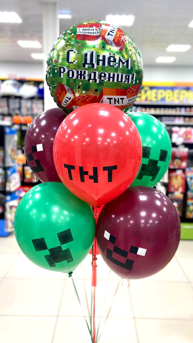 Шар Круг фольга С ДР Пиксели 46 см 1 штШар латексный с рисунком Пиксели (макси дизайн) 30 см 6 шт