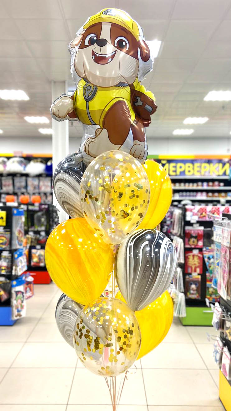 Шар фольга Фигура Щенячий патруль Крепыш 1 штШар латексный Кристалл прозрачный + конфетти золото 3 шт