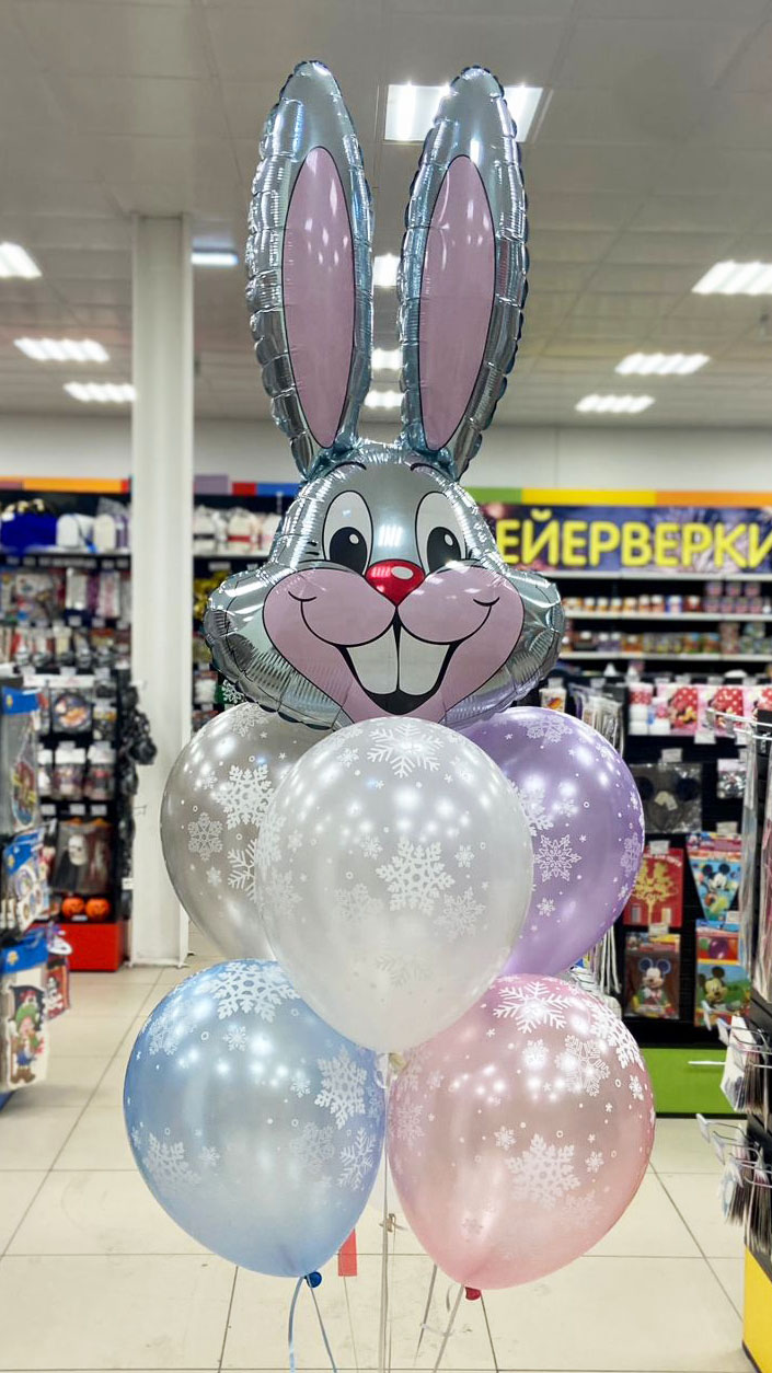 Шар фигуры фольга Кролик серый 1 штШар латексный с рисунком Снежинки перламутр (612148-25 30 см 6 шт