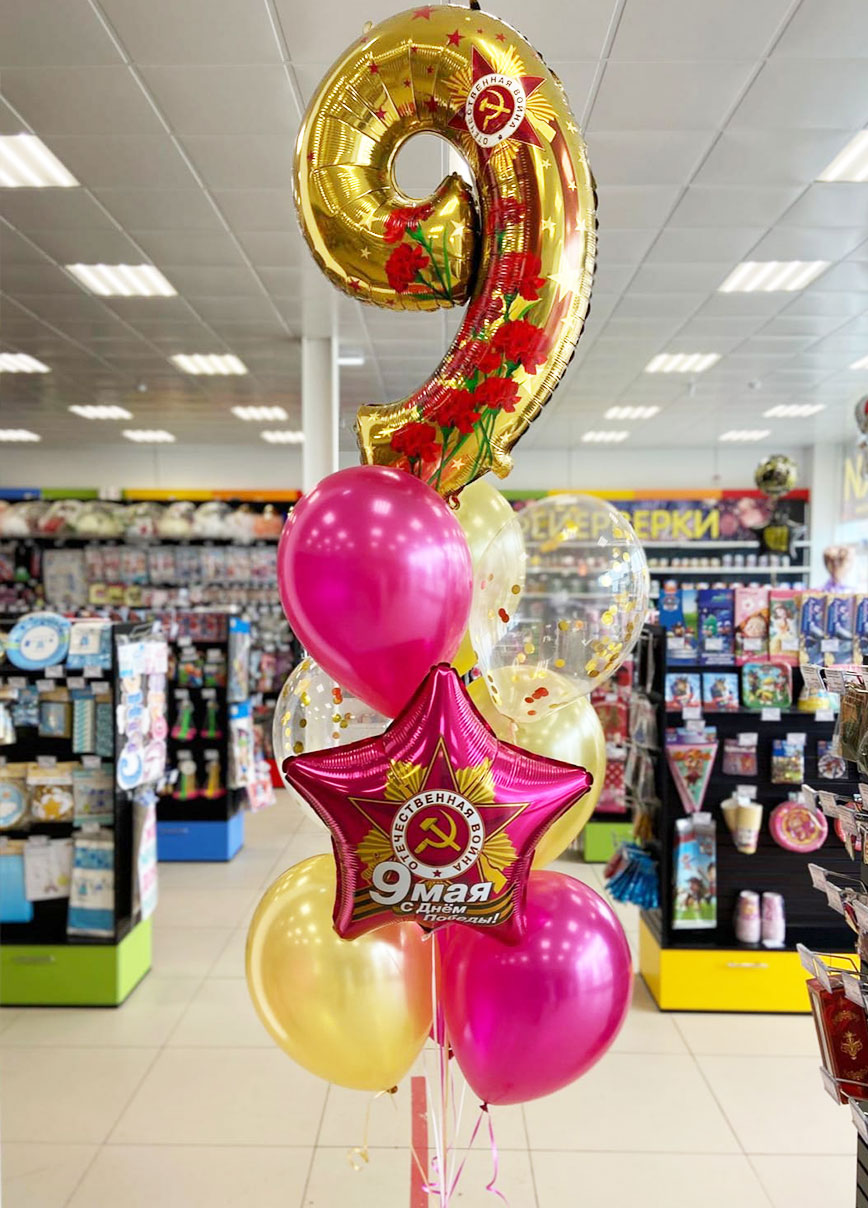 Шар Цифра 9 Мая 86 см 1 штШар Звезда фольга 9 Мая С Днем Победы рубин 46 см 1 шт