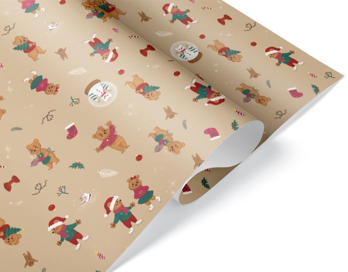Бумага глянцевая Мишки новогодние 70*100 см 1 шт