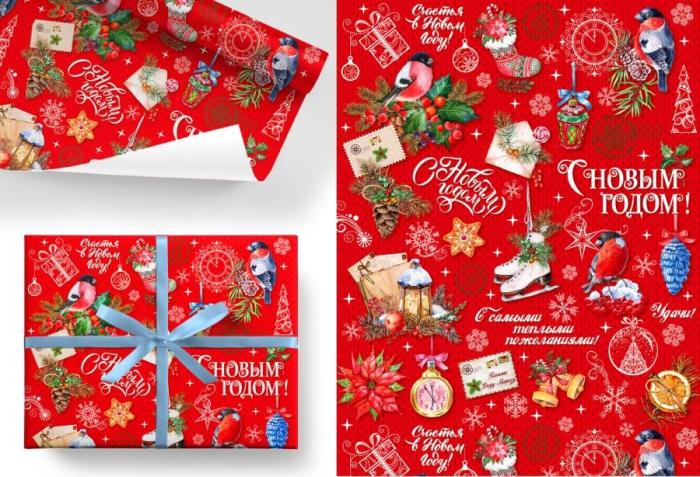Бумага глянцевая Снегири 70*100 см 1 шт