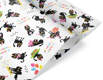 ----Бумага упаковочная С ДР Котики с подарками 70*100 см 1 шт