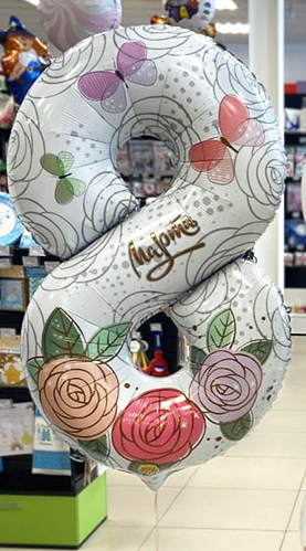 Шар Цифра 8 Марта Розы 100 см 1 штГрузик в фольге 1 шт