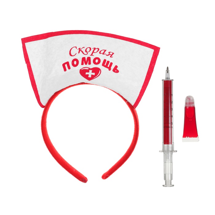 Карнавальный набор (3в1) Медсестра ободок шприц кровь 1 шт