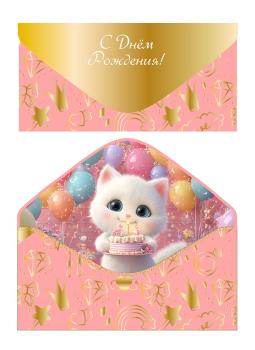 -----Конверт для денег С ДР Кошечка с тортом 1 шт