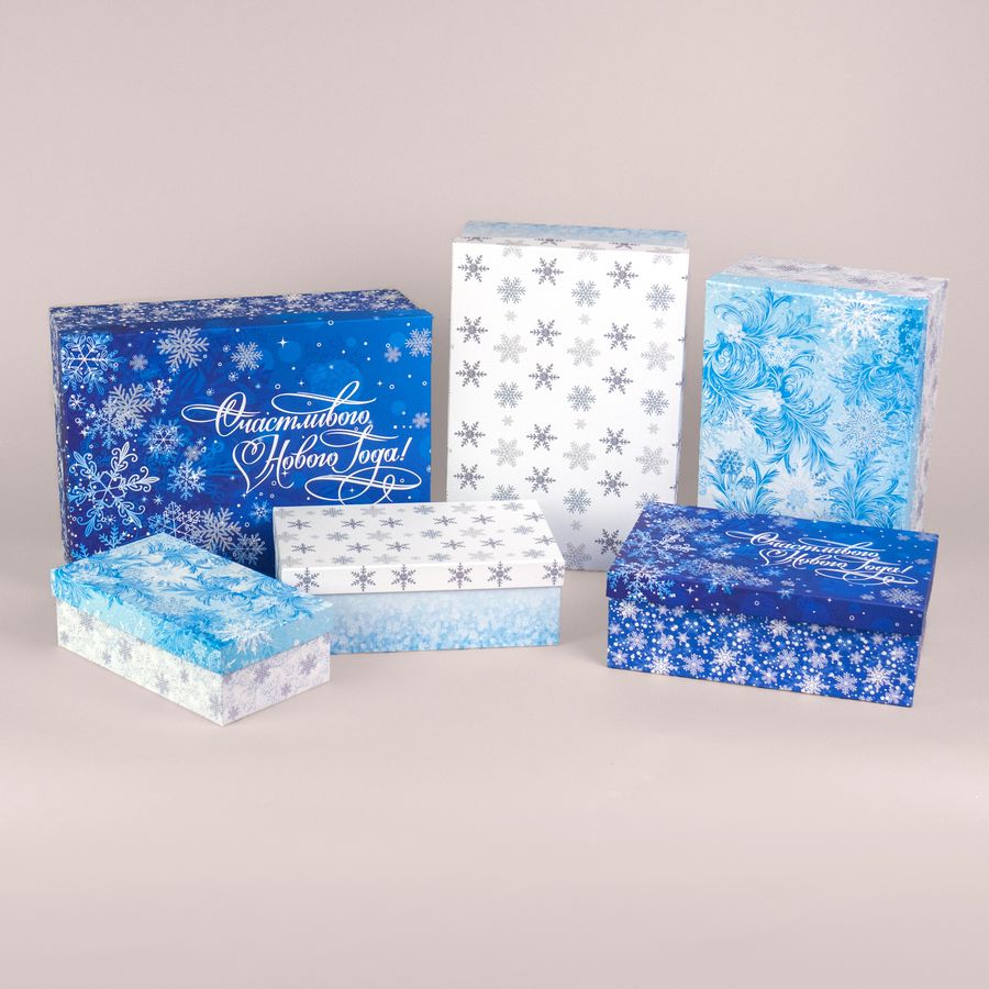 Коробка прямоуг Снежинки №6 34,5*25*12,5 см рис микс 1 шт
