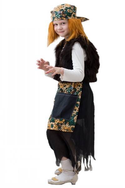 Костюм Баба Яга 5-7 лет, рост 122-134 (косынка с вол, мех. жилетка, юбка с передником, наб. горб)