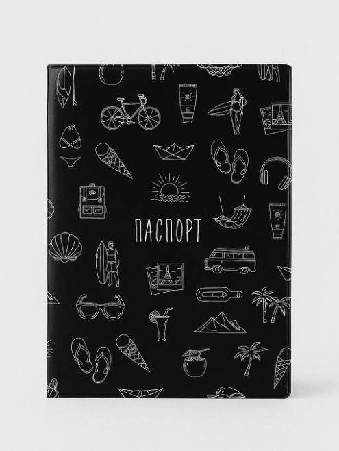 Обложка для паспорта Путешествия черная 1 шт