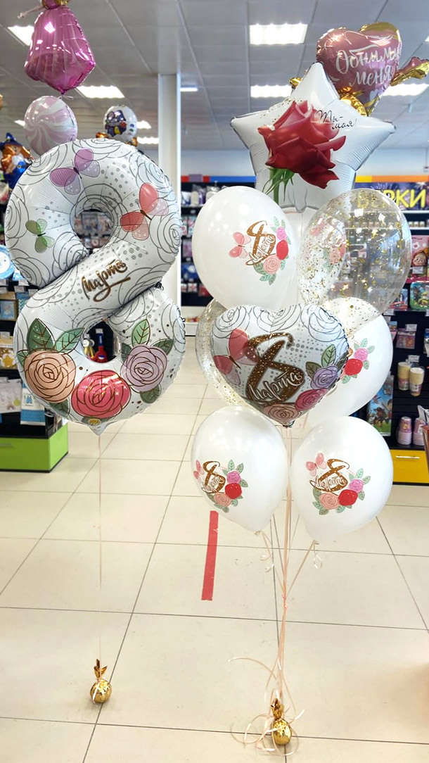 Шар Цифра 8 Марта Розы 100 см 1 штГрузик для шара в фольге 1 шт