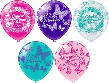 Шар шелкография 12" С ДР! Бабочки 25 шт