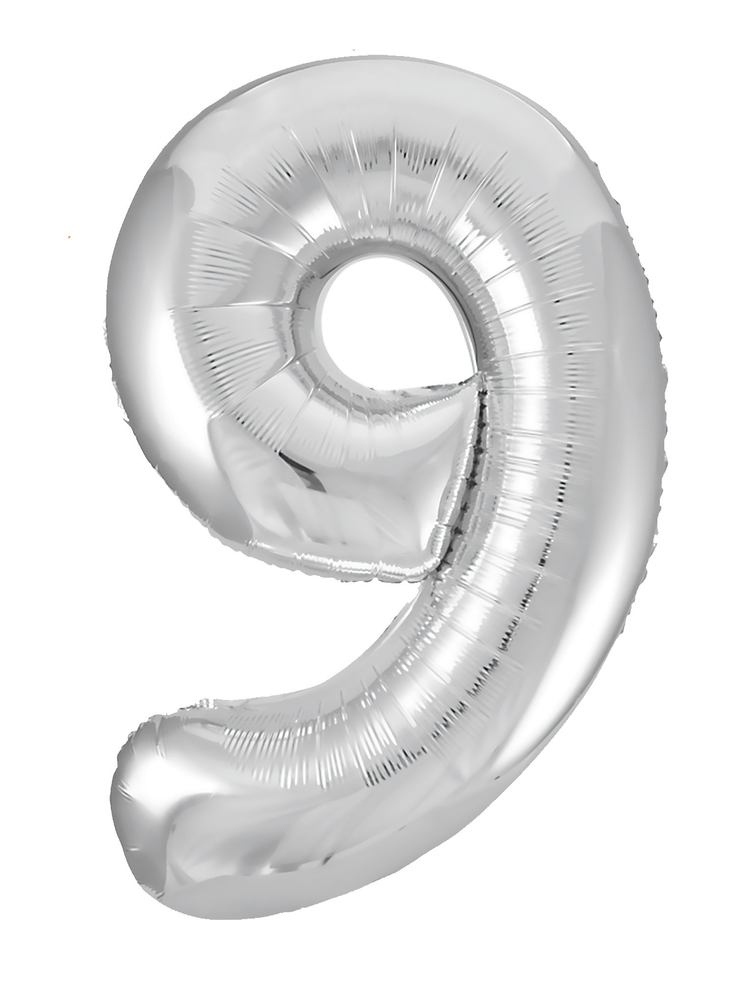 Шар Цифра 9 серебро Слим 102 см (Ag)