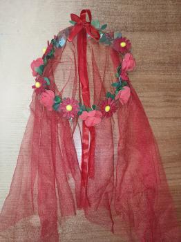 Венок гавайский с фатой Цветы Красный 1 шт
